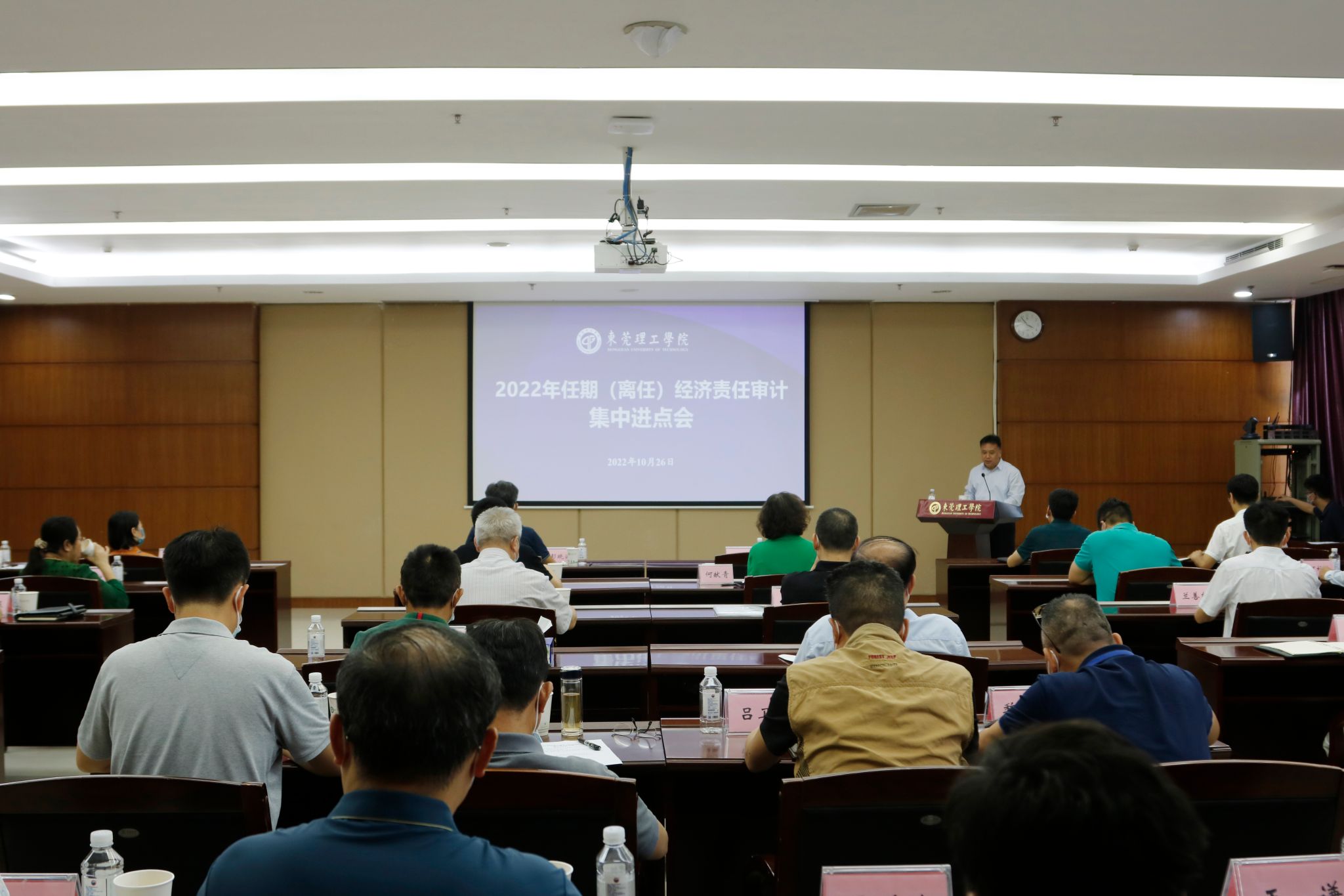10月26日,学校召开2022年任期(离任)经济责任审计集中进点会。校党委副书记、校长、党委审计委员会副主任马宏伟出席并讲话,全体被审计领导干部、会计师事务所代表、审计处全体工作人员参加会议。会议由审计处处长王博主持。