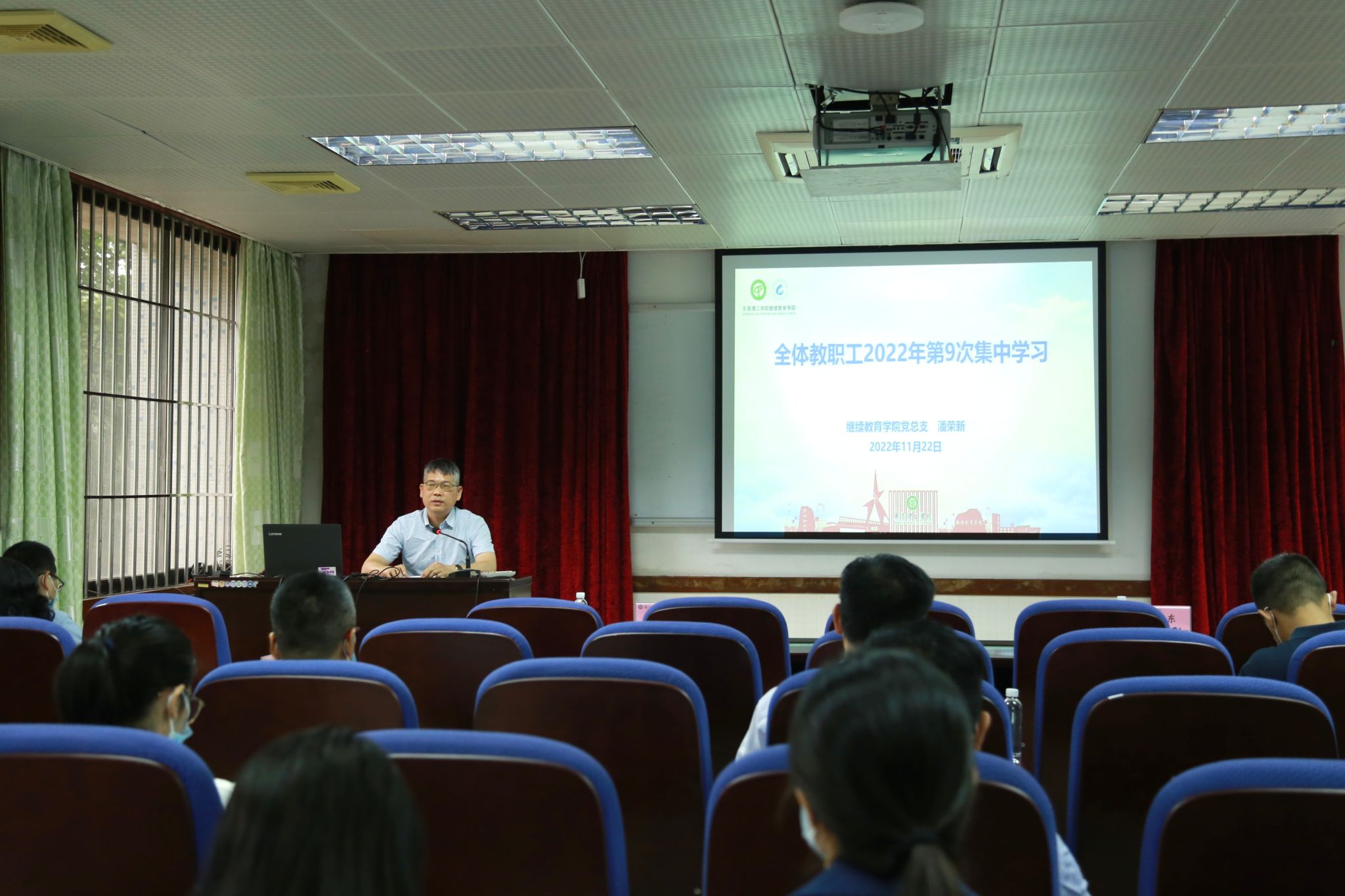校党委委员、副校长李文芳在莞城校区开展党的二十大精神宣讲,继续教育学院、莞城校区管委会领导班子以及各党支部委员参加。