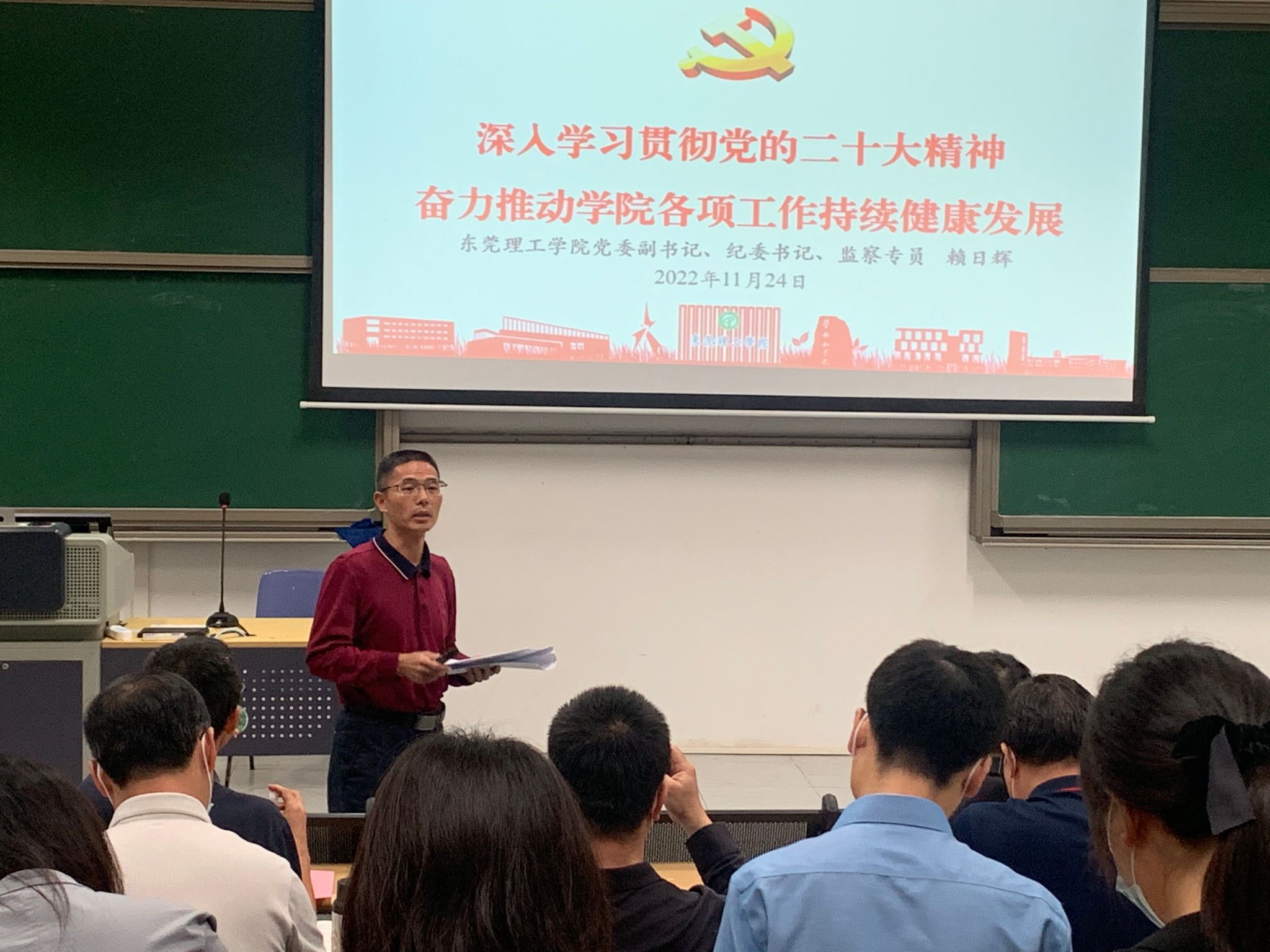 11月24日,学校举办学习贯彻党的二十大精神宣讲报告会,广东省教育系统学习贯彻党的二十大精神宣讲团成员、东莞市委宣讲团成员黄祖辉教授为莞工师生作报告。