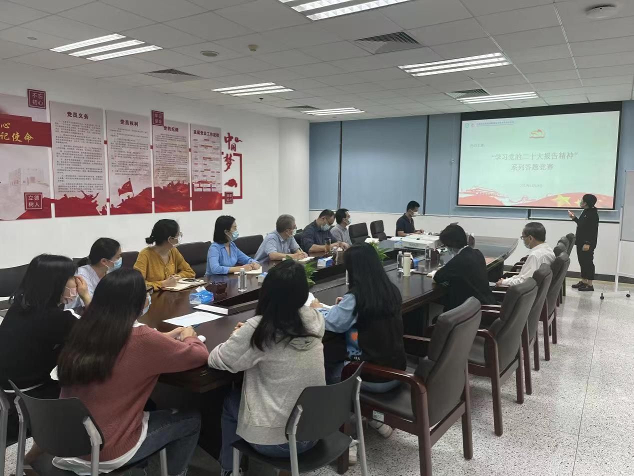 中法联合学院教师党支部举行“学习党的二十大精神”答题竞赛活动,学院全体教职工参与。竞赛活动以党的二十大报告为主要内容,从中提取出知识点和题目,现场抢答激烈,教职员工答题热情高涨。