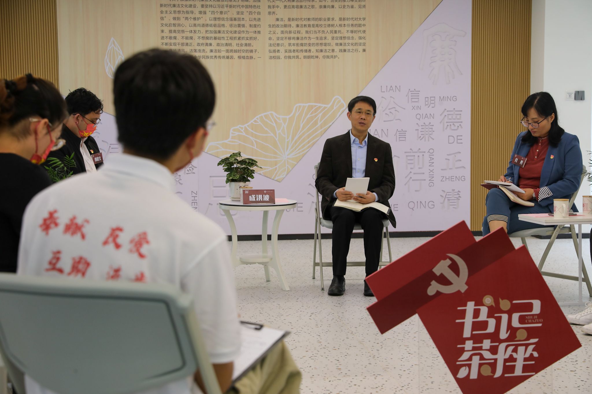 第三十二期书记茶座上,成洪波与12名师生代表以茶为媒,围炉论道,共同学习党的二十大精神,并紧密结合学校实际和自身学习工作情况分享心得体会。