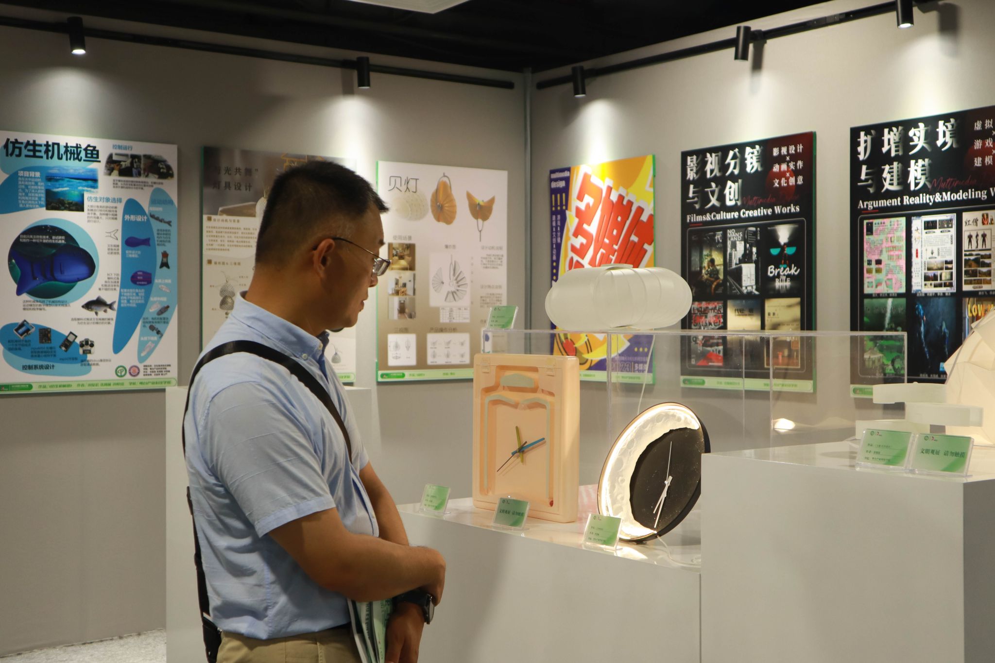 “无禁·不竭”2023开云kaiyun官方网站设计展今天再次开展,成为开放日的热门“打卡”地。展厅内,来访人员认真观看作品,感受莞工学子扎实的专业基础和无限的创意。