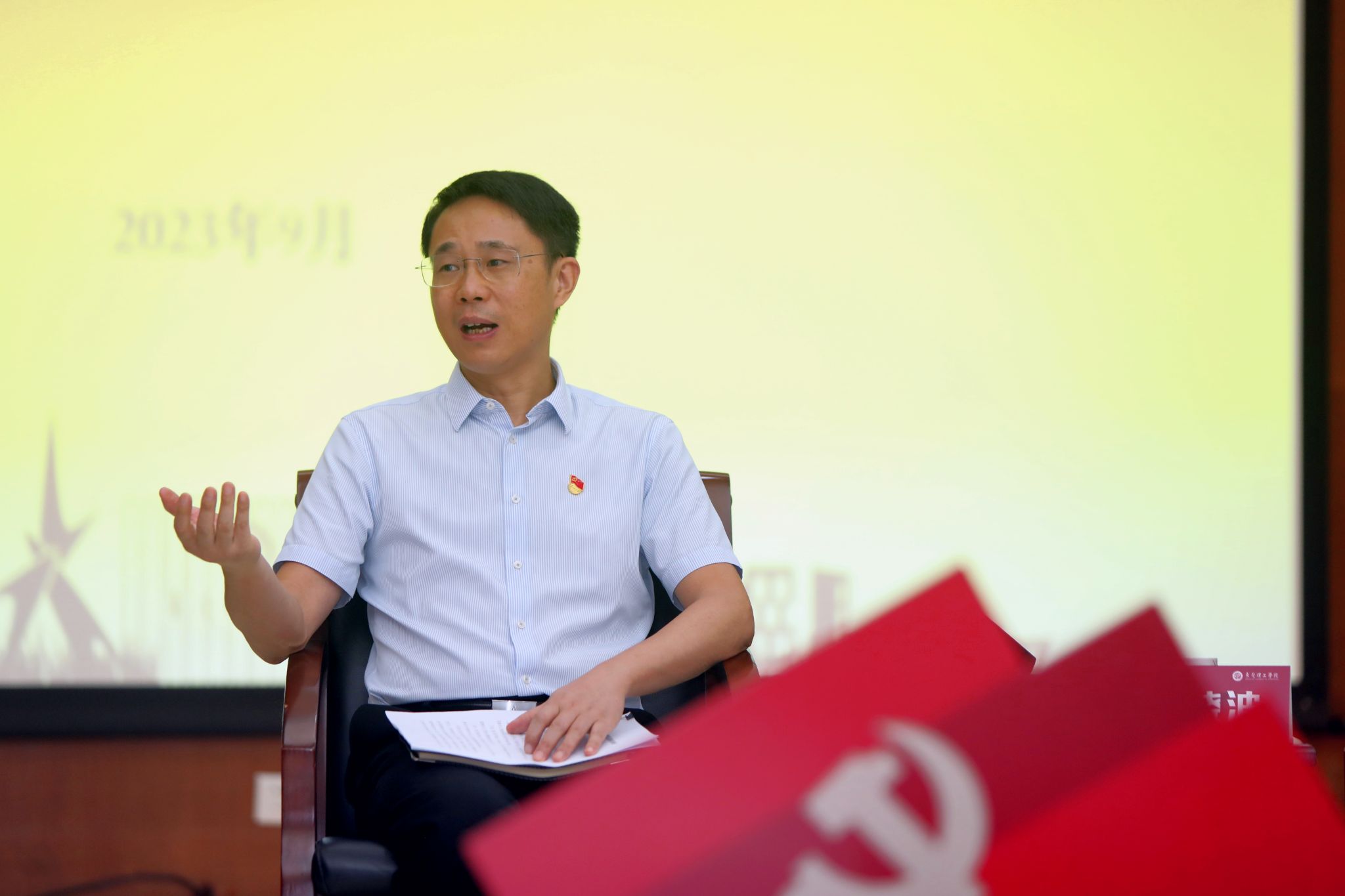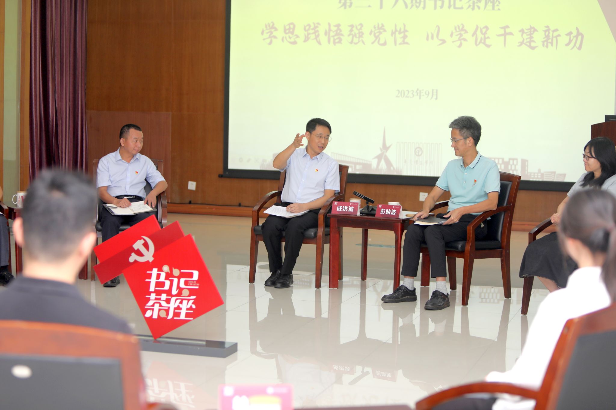 为了引领全校师生共学,汇聚合力,学校组织了马克思主义学院骨干教师面向全校22个二级党组织开展宣讲工作。来自马克思主义学院的教师岳凤在此次书记茶座上分享了自己开展宣讲工作和讲授《习近平新时代中国特色社会主义思想概论》课程的情况。她表示,主题教育的扎实深入开展让师生实现了双丰收。一方面,主题教育帮助思政课教师研学新思想,充实课堂内容,也让思政课教师更深入地钻研学科特点、丰富备课资料,扎实做好教书育人工作,切实实现以学促干。另一方面,主题教育辐射课堂,同学们可以通过理论的品格、学理的魅力、逻辑的通联更深入地学习习近平新时代中国特色社会主义思想,铸就理想信念,加强知识积累,学生学习奋斗的热情也被更好地激发出来。