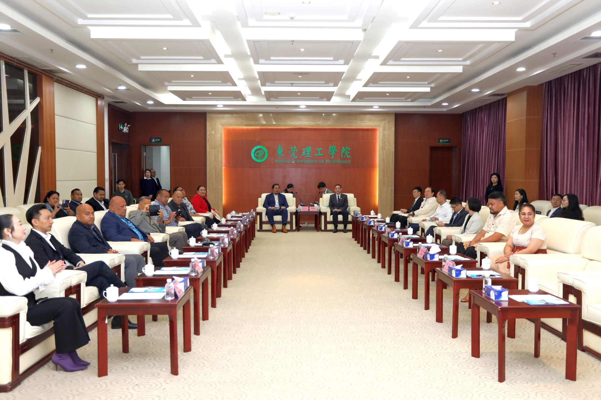 副校长杨敏林代表学校师生,对代表团一行的到来表示热烈的欢迎,并从校区建设、发展历程、学科专业建设、国际化战略等多个方面向代表团详细介绍了学校的情况。杨敏林表示,2018年汤加王国国王图普六世及王后也曾到访开云,建立了汤加和莞工的深厚情谊。期待以后莞工和汤加能开展更多交流和合作。