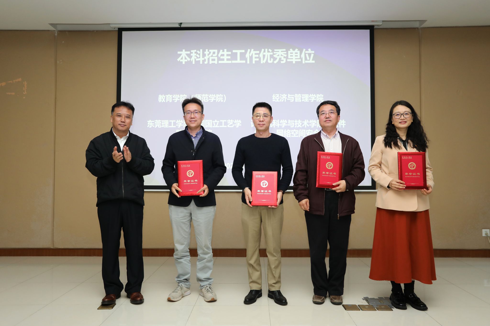 会议表彰了2023年本科招生工作表现突出的“本科招生工作优秀单位”和“本科招生工作先进个人”,马宏伟向优秀单位和先进个人颁奖。