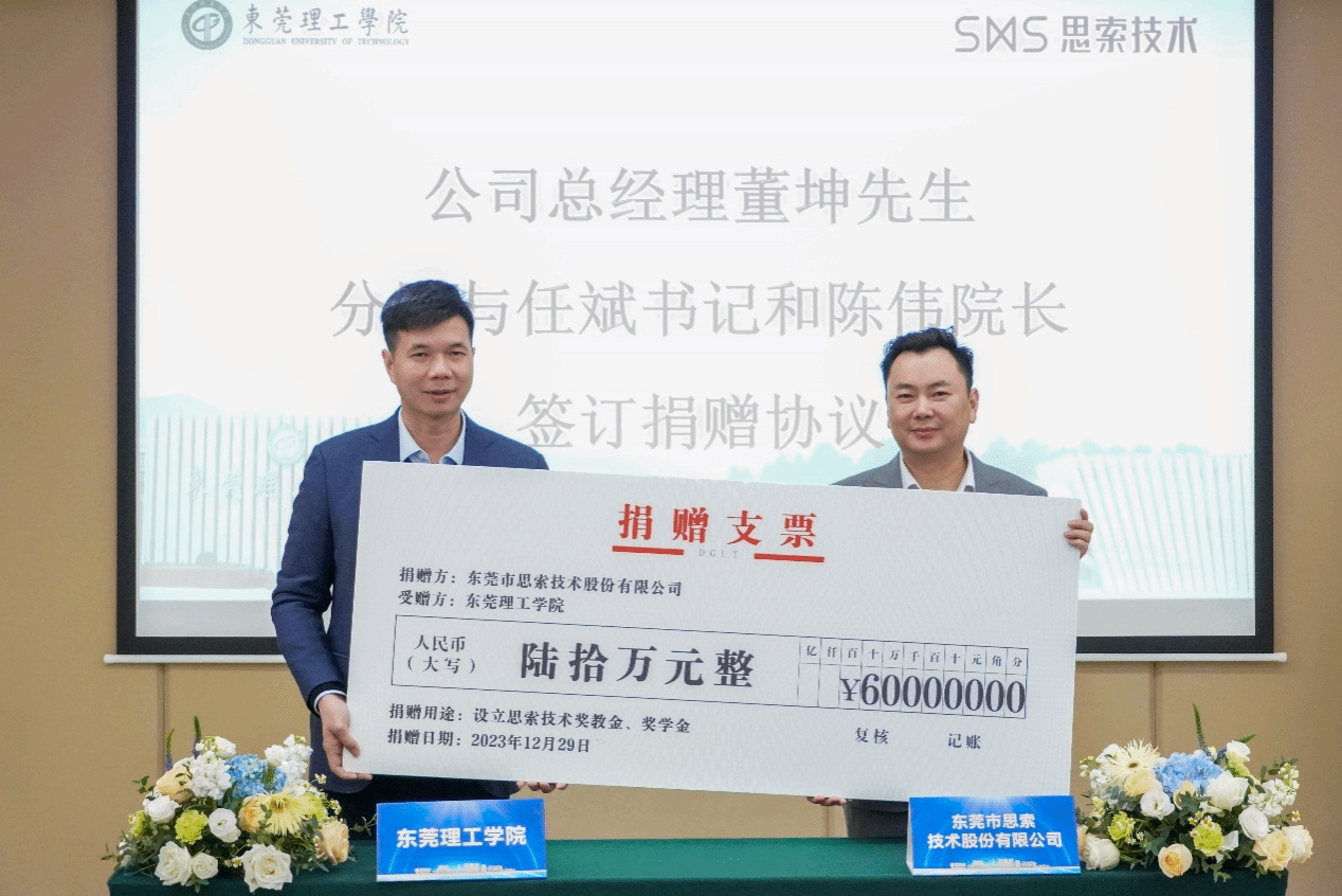日前,东莞市思索技术股份有限公司向开云kaiyun官方网站捐赠仪式在松山湖校区会议中心举行。东莞市思索技术股份有限公司总经理董坤、常务副总经理李维国,学校就业创业与校友工作部、教务部、卓越工程师学院、粤台产业科技学院、国际微电子学院等部门负责人、师生代表参加了仪式。
