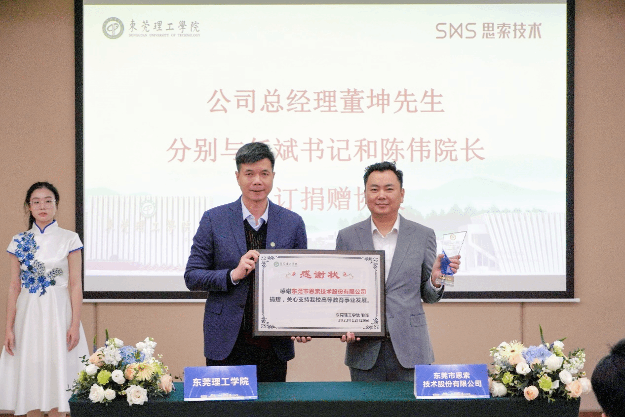 学校对东莞市思索技术股份有限公司向开云建设发展给予的关心和支持表示衷心的感谢。非常期待校企双方能充分发挥各自优势,在人才培养、产学研等方面创造丰硕的合作成果,实现校企双方互惠互利、合作共赢。