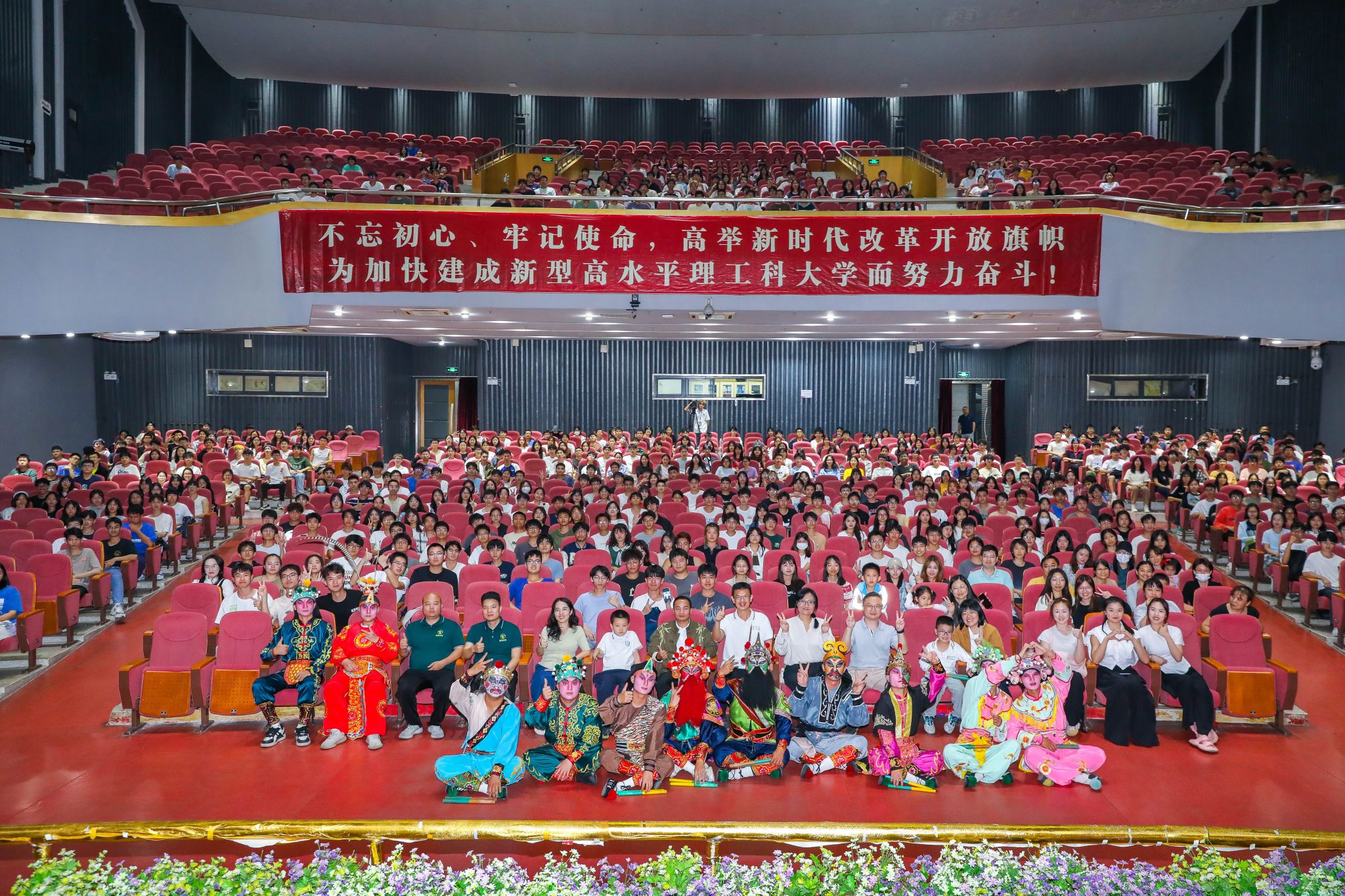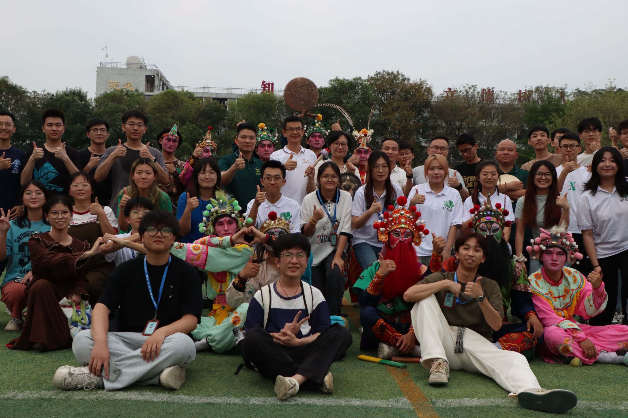 最后,普宁富美青年英歌队为同学们带来了一场精彩绝伦的普宁英歌表演,表演结束后,劳丹向普宁富美青年英歌队赠送了纪念相框,英歌队向学校回赠了标旗,并与师生合影留念。
