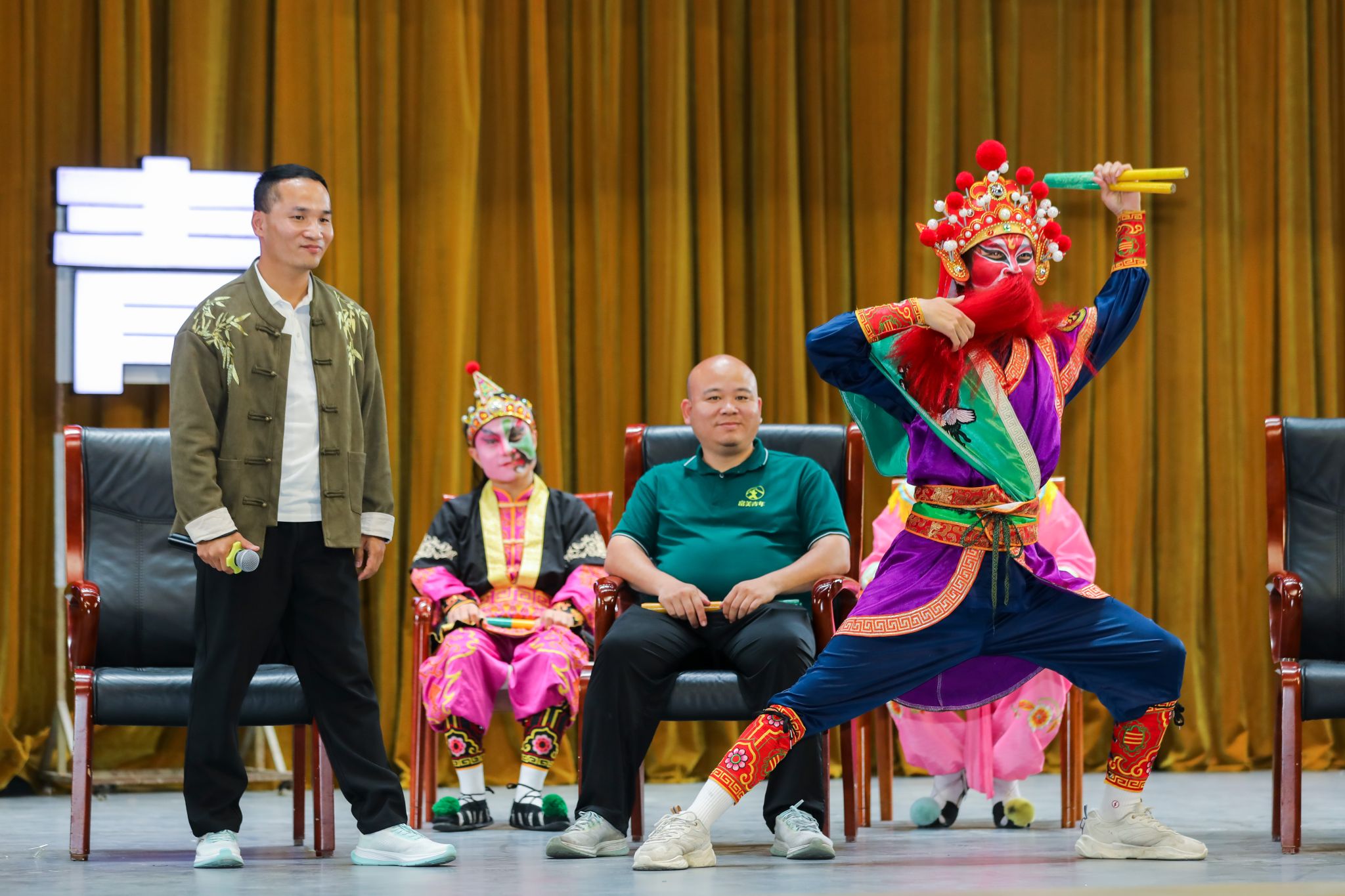 开场访谈环节,李洪州向全体师生介绍了普宁与莞工“双百行动”的结对共建背景和富美青年英歌队首次到高校展演的意义。在普宁开展驻村帮扶工作六年的他,意识到到非遗文化的传承面临着许多挑战,年轻一代缺乏对非遗文化的深入了解。因此,与开云团委结对共建,决定将普宁青年英歌带入高校校园,让更多的青年学生感受和了解非遗文化的魅力。