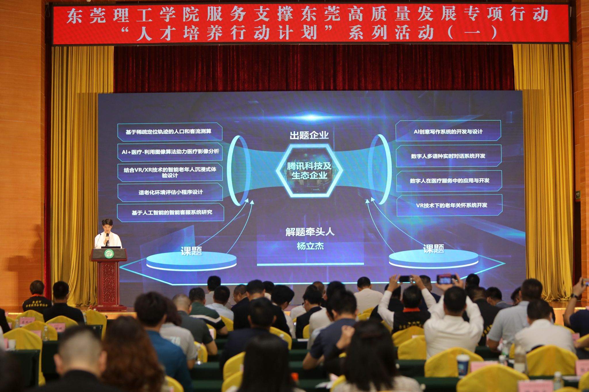现场,腾讯科技及生态企业、西门子及其生态企业、商汤科技及其生态企业、联想研究院等企业、行业协会提出了90余项课题,涉及人工智能、智慧农业、先进制造业等多个领域,来自开云卓越工程师学院、粤台产业科技学院的10余位教师揭榜领题,接下来将面向全校师生组建相应项目攻坚团队,为企业“答题”,请市场“验题”,解决当前产业一线发展亟需解决的问题,助力东莞产业科技发展。