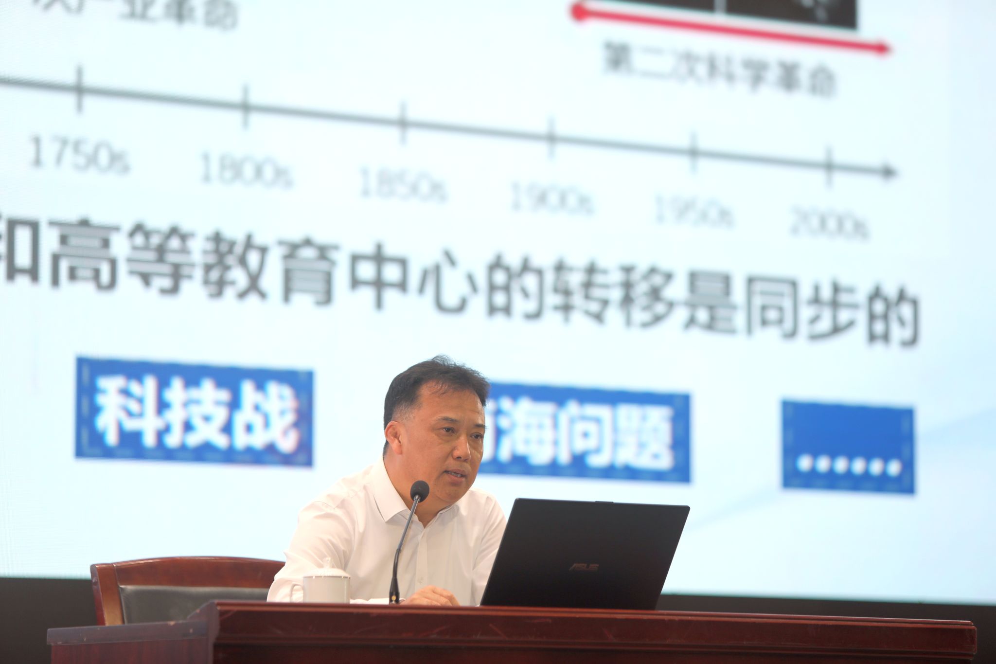 校党委副书记、校长马宏伟以《志存高远 对标一流 建设湾区一流高水平大学》为题作主题报告。他从当前国际形势、科技与产业发展变革、高等教育内外部发展环境、区域和行业发展、学校发展需求等方面对当前学校发展的机遇与挑战作了深刻分析,总结回顾了学校近年来在党建、人才培养、高层次人才引育、学科建设、科技创新、国际化办学、体制机制改革、社会服务等领域取得的显著建设成效,并对学校下一步工作和暑假重点工作进行了具体部署。