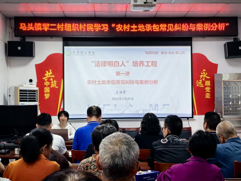 开云kaiyun官方网站统筹发挥法律与社会工作学院、学校法治办、学校法律顾问团队的学科专业优势和法务优势,聚焦干部和村民迫切希望了解的农村土地纠纷、矛盾纠纷调解等法律需求,从培养乡村“法律明白人”和法治教育入手,组织法律法务专家进镇入村为干部和村民“说身边法律,解身边难题”,以法律服务参与基层共治,为军二村的乡村治理赋能、加码、提质。