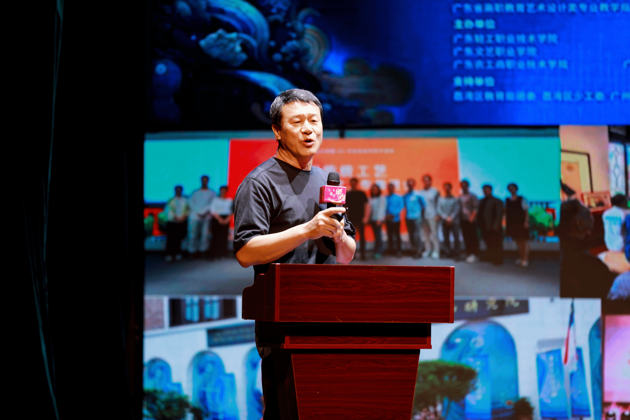 桂元龙教授在讨论非遗传承与职业教育实践时,强调了将非遗元素融入设计教育的重要性。他展示了广东轻工职业技术学院如何培养具备“精设计、懂科技、通商道、厚人文”能力的复合型创新人才,并分享了非遗学院在非遗项目、学术活动、专业实习、非遗大师聘请、展览举办以及建立非遗融合文创研发基地等方面的努力与成果。