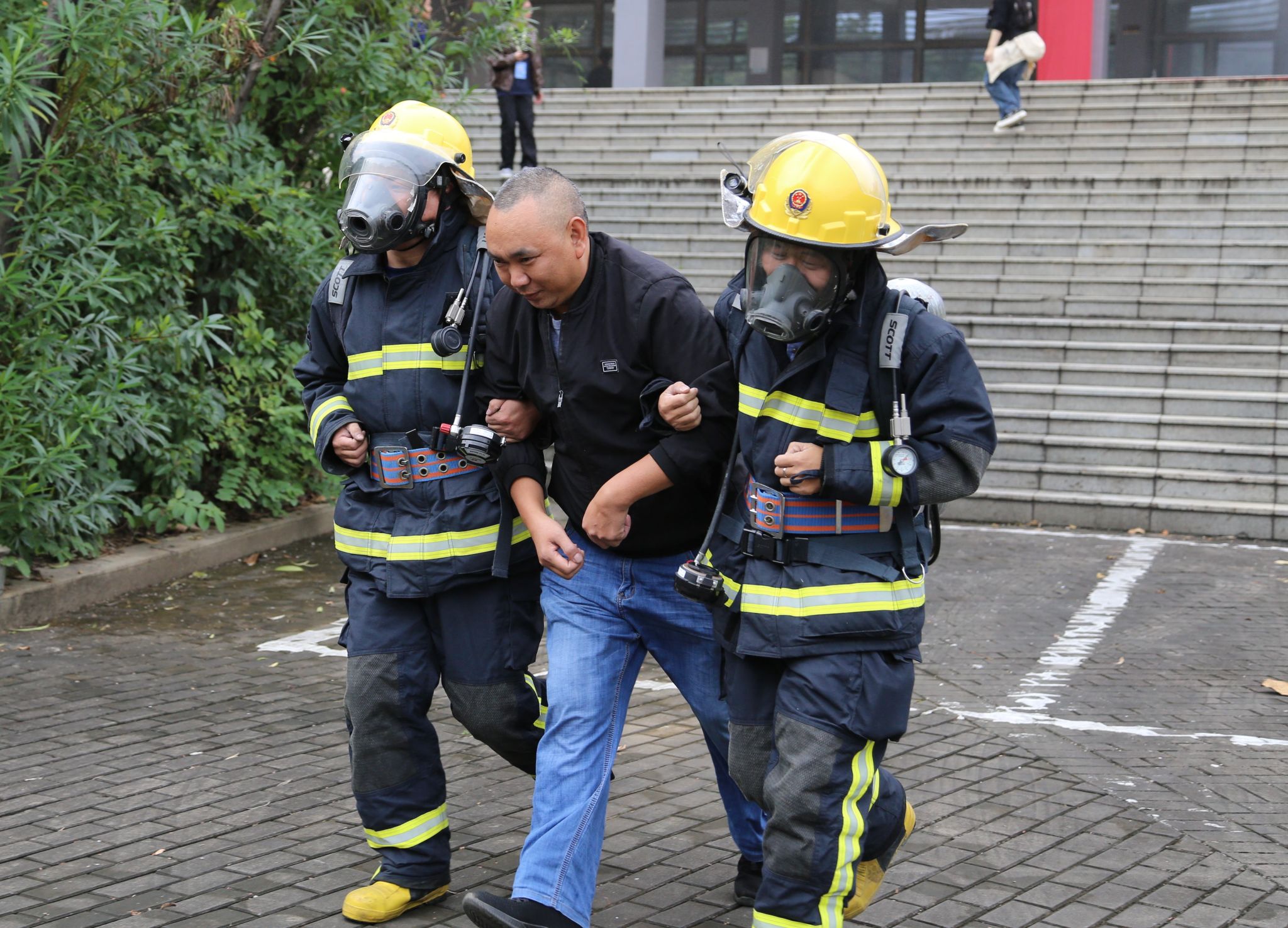 学校党委委员、宣传部部长邹琼,松山湖消防救援大队政治教导员陈树源、松山湖公安分局红棉派出所副所长周汉强,学校相关职能部门、各二级学院相关负责人及师生代表参加了演练活动。