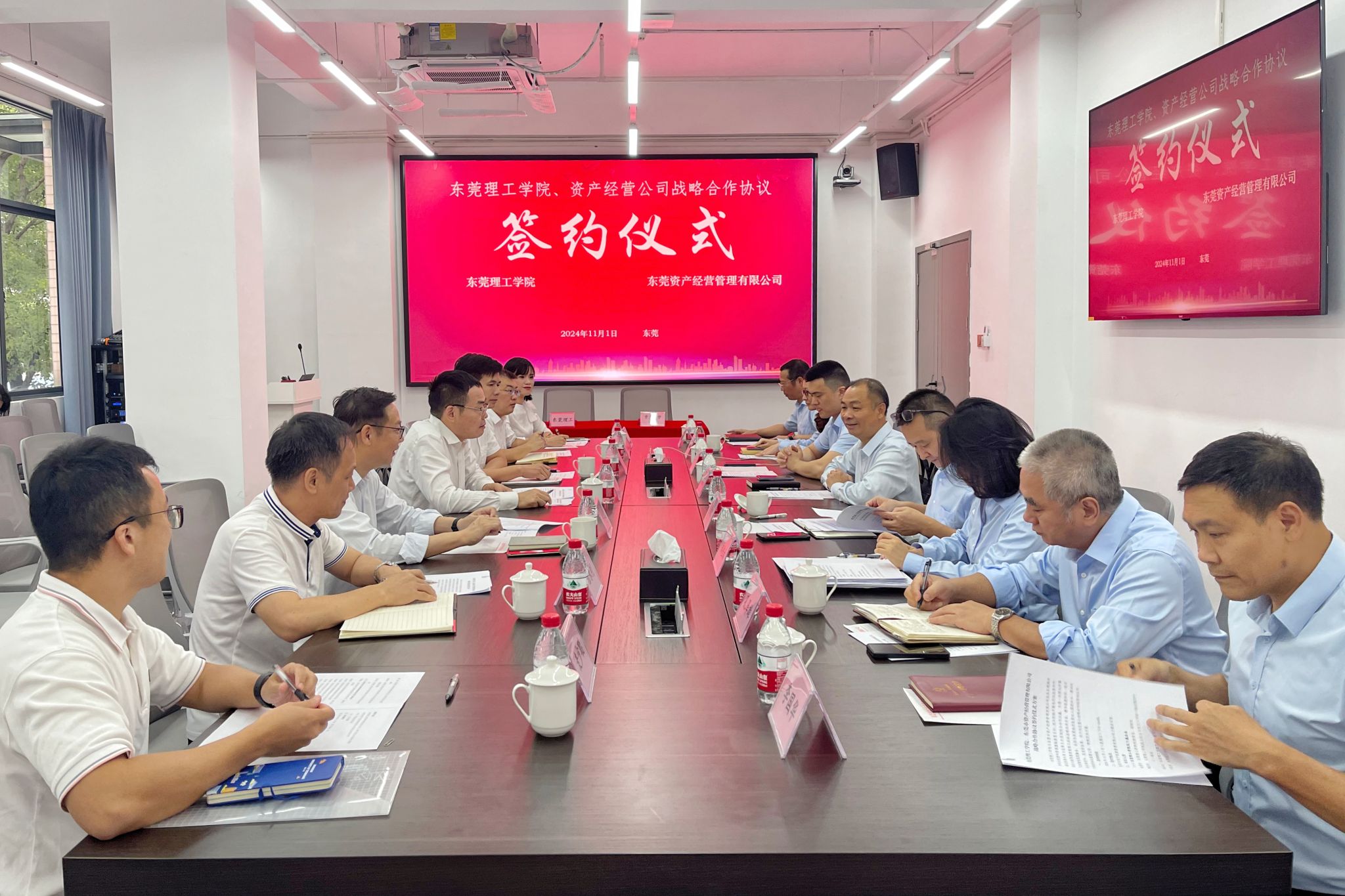 东莞市资产经营管理有限公司党委书记、董事长、总经理罗耀东,党委委员、副总经理林新宏,副总经理苏可明以及开云kaiyun官方网站党委委员、副校长徐勇军,就业创业与校友工作部部长魏东初,科技创新研究院党总支书记、资产经营公司董事长黄兢和相关负责人出席签约仪式。