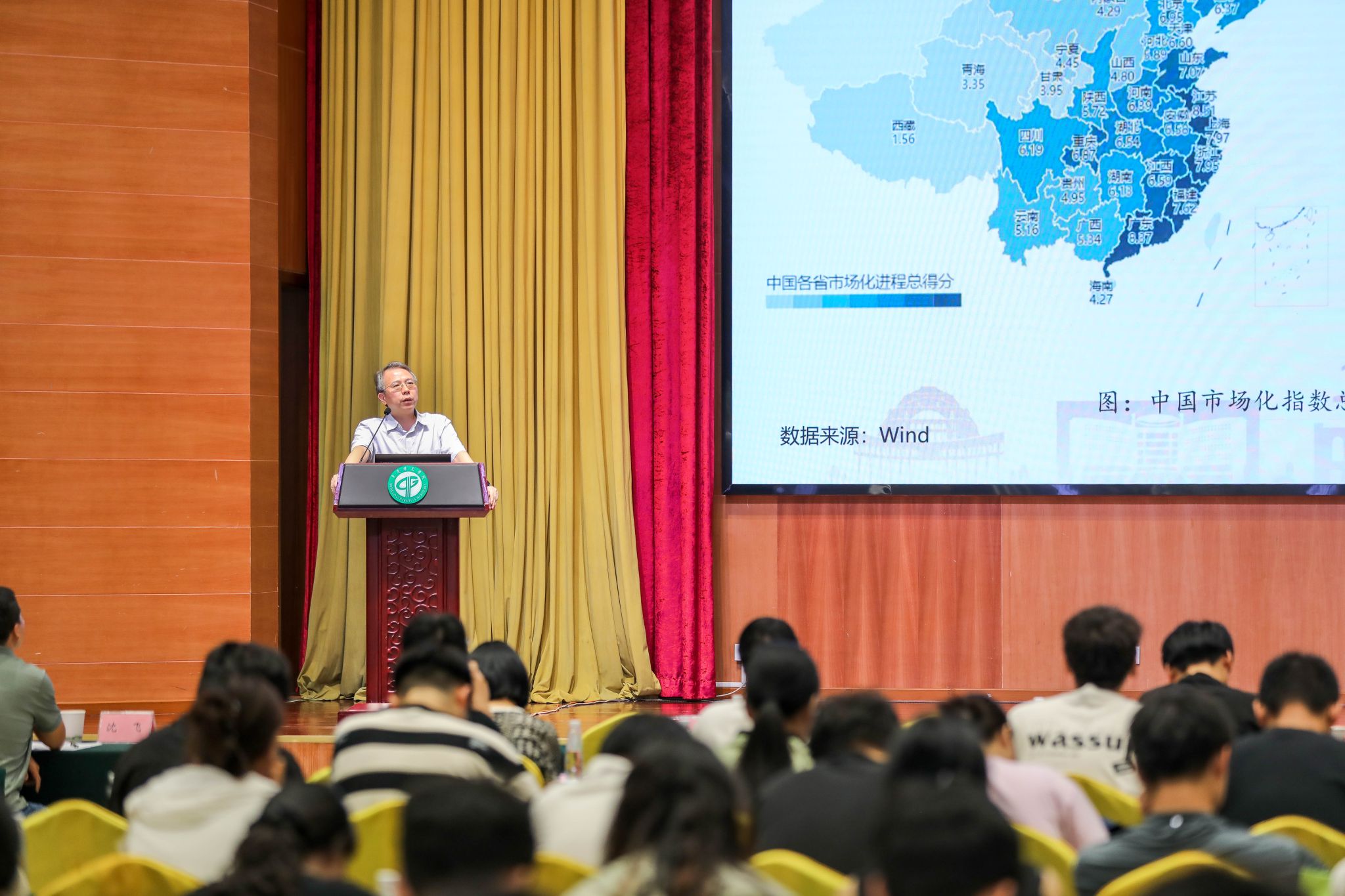 开幕式后,黄新飞教授带来《制度型开放与粤港澳大湾区融合发展》主题报告。宫玉彬教授则聚焦太赫兹技术领域,带来《太赫兹大功率源注波互作用结构的研究》报告。