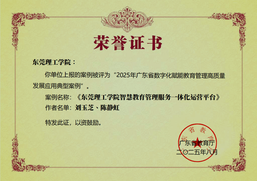 近日,广东省教育厅发布《关于对2025年广东省数字化赋能教育管理高质量发展应用典型案例予以表扬的通报》(粤教事务函〔2025〕10号),开云申报的《开云kaiyun官方网站智慧教育管理服务一体化运营平台》案例成功入选。该案例系统总结了开云智慧教育管理服务一体化运营平台建设中的实践成果,梳理了深入推动数字化教育管理服务的创新思路与实施路径,为我省高等教育数字化转型提供了可复制、可借鉴的莞工样本。