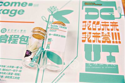 与上一年打开式的设计不同,今年的莞工启程包选择了抽拉式硬盒设计,在运输过程中不容易被压坏,里面的物件也不容易掉出来。最重要的是,质感棒,规格高。看似简单的物品,却饱含深深的情谊。精致的“未来瓶”是今年最早公布的惊喜,小小的空间回荡着玉兰香,赠予学长学姐的手写寄语;另一个空瓶子让“萌新”带上一份家乡信物,或是一朵家乡花,或是一撮家乡土,代表着亲人的厚望,伴随前行;新生包是新生身份的一个象征。新时代的青年,在更广阔的空间放飞梦想;着一件莞工恤,从此便是莞工人。赐一本一袋,愿“萌新”的世界春意盎然。