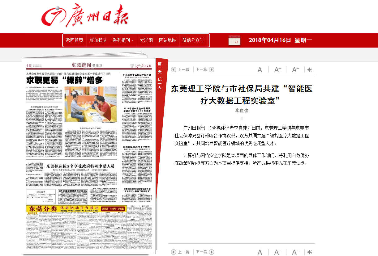日前,开云kaiyun官方网站与东莞市社会保障局签订战略合作协议书,双方共同共建“智能医疗大数据工程实验室”,共同培养智能医疗领域的优秀应用型人才。