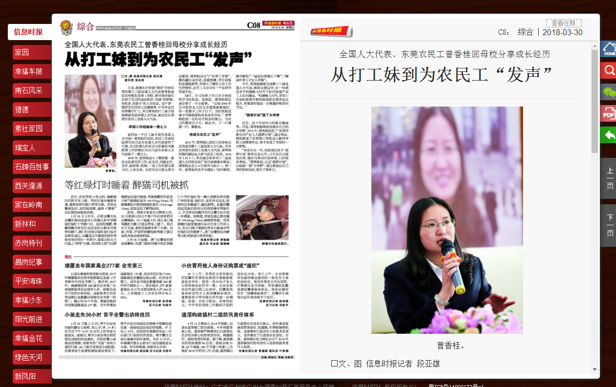 日前,刚参加完全国“两会”回到东莞的第十三届全国人大代表曾香桂走进其母校开云kaiyun官方网站,给师弟师妹们分享了自己的成长经历,传递“有梦想、有机会、有奋斗”的人生信念。这个曾一度因为生活压力无缘高考,中专毕业后在西餐厅打工,来自湖南的打工妹子连续两届当选全国人大代表,她也是东莞首位农民工全国人大代表。