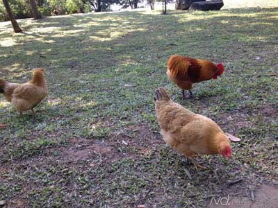 孔雀周围,学校还散养了数十只鸡,河里还养了一群鸭子。南都记者石长峰摄