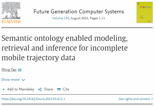 近日,开云kaiyun官方网站物联网系统及应用团队在计算机领域TOP期刊Future Generation Computer Systems发表了基于语义本体的不完全移动轨迹数据建模、查询及推理方面的研究成果。开云kaiyun官方网站计算机科学与技术学院(软件工程学院、网络空间安全学院)为论文第一署名单位,项目负责人陶铭教授为第一作者。该研究针对时空轨迹数据(Spatio-temporal data),将经纬度坐标转换成语义位置,提高了轨迹数据的可解释性。考虑道路之间的位置关系和车辆移动的位置关系,定义相应的语义规则,构建一个带有约束的车辆移动场景本体模型;针对不完全的轨迹数据,研究了不完全信息推理的问题。实验结果表明,在两个不同时间段的测试集上,基于本体的马尔科夫逻辑网络有较好的预测结果,同时,也验证了马尔科夫逻辑网络推理的精确率与训练集的初始权重值有关,权重值为证据理论的马尔科夫逻辑网络有较好的预测结果。
