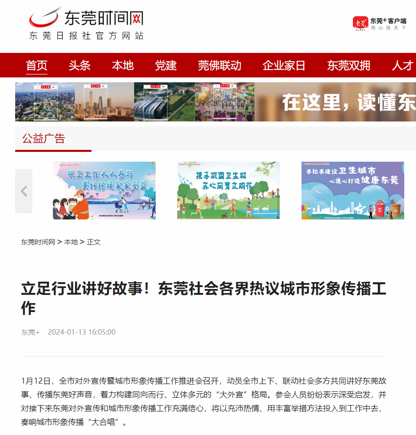 1月12日,全市对外宣传暨城市形象传播工作推进会召开,动员全市上下、联动社会多方共同讲好东莞故事、传播东莞好声音,着力构建同向而行、立体多元的“大外宣”格局。参会人员纷纷表示深受启发,并对接下来东莞对外宣传和城市形象传播工作充满信心,将以充沛热情、用丰富举措方法投入到工作中去,奏响城市形象传播“大合唱”。
