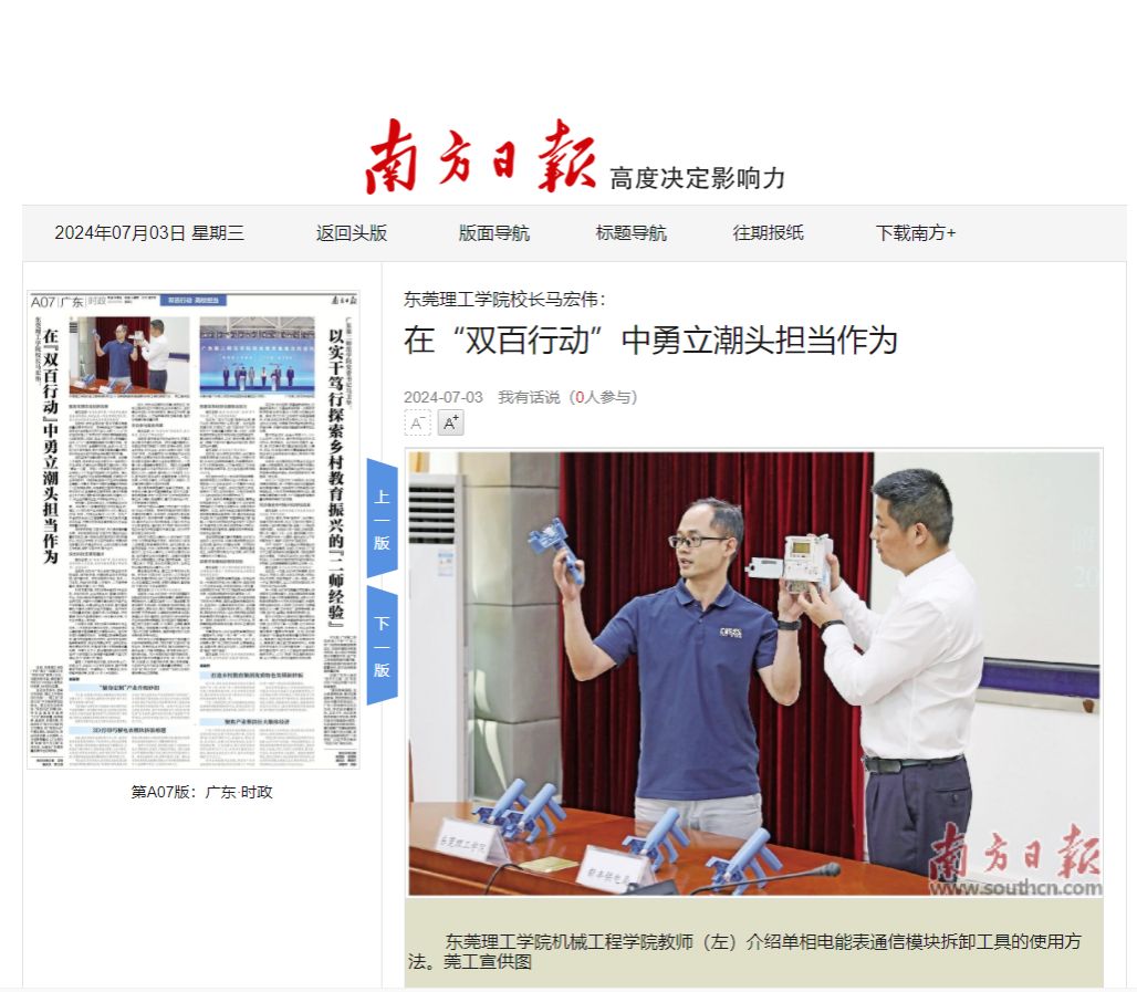 南方日报:在“双百行动”中,莞工结合自身学科和人才优势,与结对县域开展了哪些项目?成效如何?