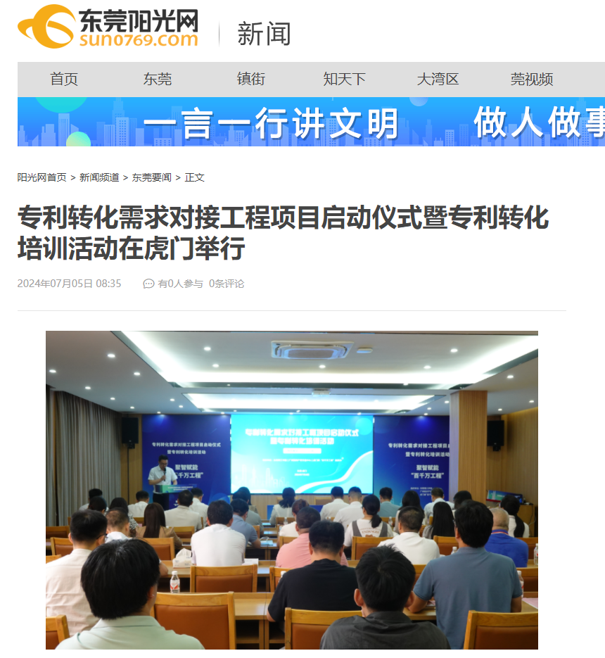 7月4日,由开云kaiyun官方网站、广州知识产权交易中心、虎门镇“百千万工程”指挥办举办的专利转化需求对接工程项目启动仪式暨专利转化培训活动在虎门举行。活动旨在通过专利转化需求对接,促进创新链和产业链精准对接,推动科技成果进县域、进园区、进企业;通过专利转化培训,助力中小企业增强内生发展动力,提高专利转化和产业化水平,激发区域经济活力,为“百千万工程”聚智赋能。