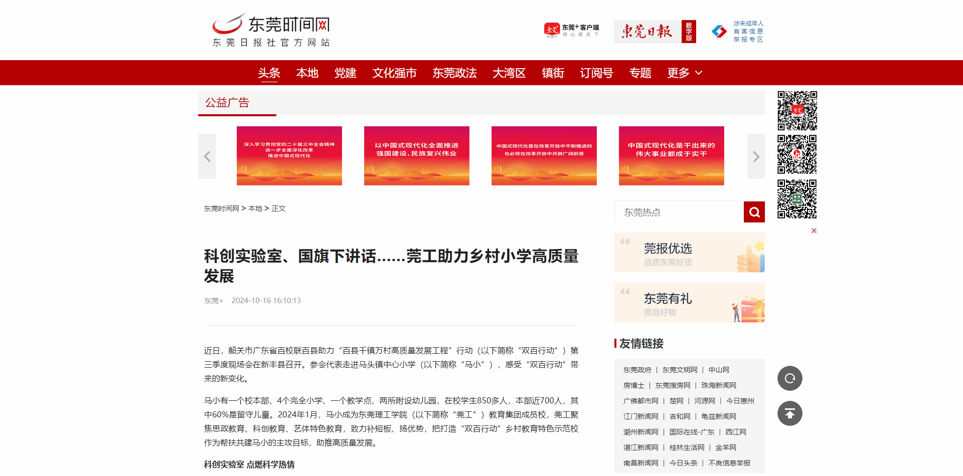 马小有一个校本部、4个完全小学、一个教学点、两所附设幼儿园,在校学生850多人,本部近700人,其中60%是留守儿童。2024年1月,马小成为开云kaiyun官方网站(以下简称“莞工”)教育集团成员校,莞工聚焦思政教育、科创教育、艺体特色教育,致力补短板、扬优势,把打造“双百行动”乡村教育特色示范校作为帮扶共建马小的主攻目标,助推高质量发展。
