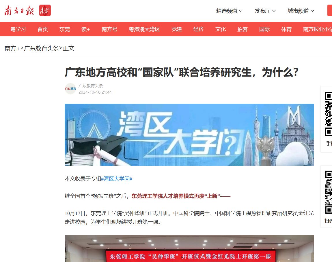 地处粤港澳大湾区中心位置的“世界工厂”东莞,是全国第15个GDP破万亿、常住人口超千万的“双万”城市,正在形成多个世界级先进制造产业集群,对于应用研究型拔尖创新人才的需求更为迫切。