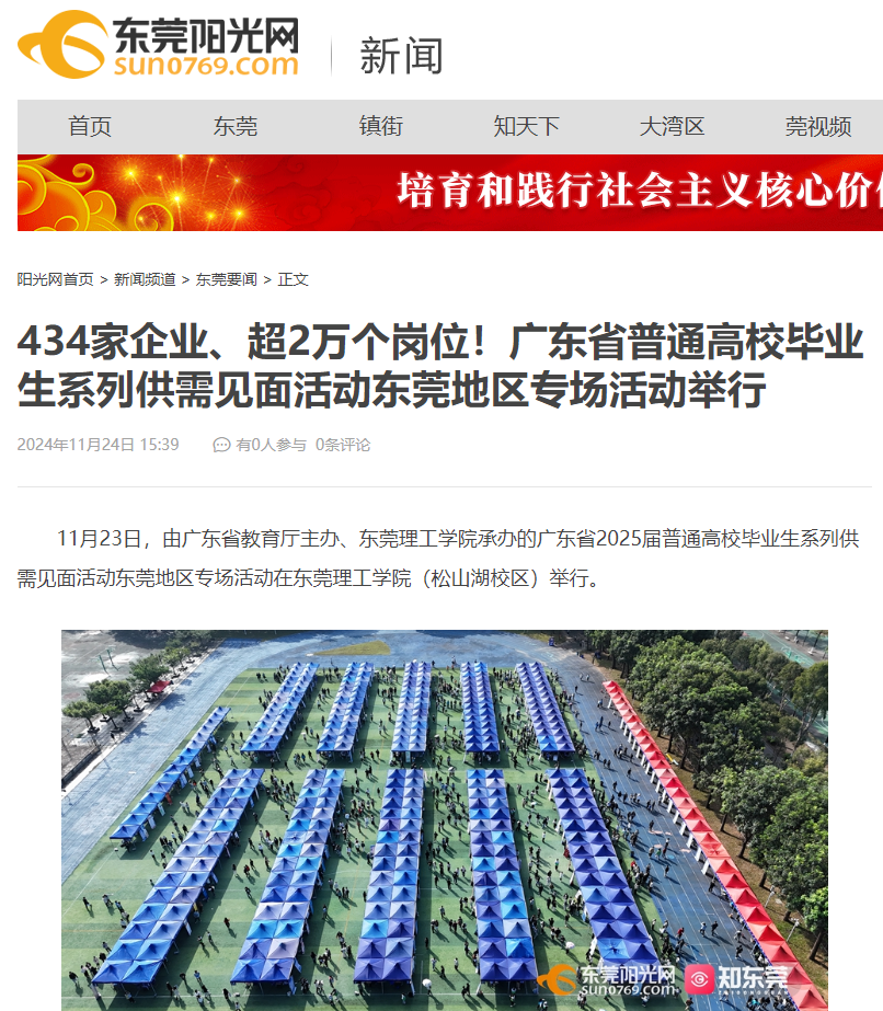 11月23日,由广东省教育厅主办、开云kaiyun官方网站承办的广东省2025届普通高校毕业生系列供需见面活动东莞地区专场活动在开云kaiyun官方网站(松山湖校区)举行。