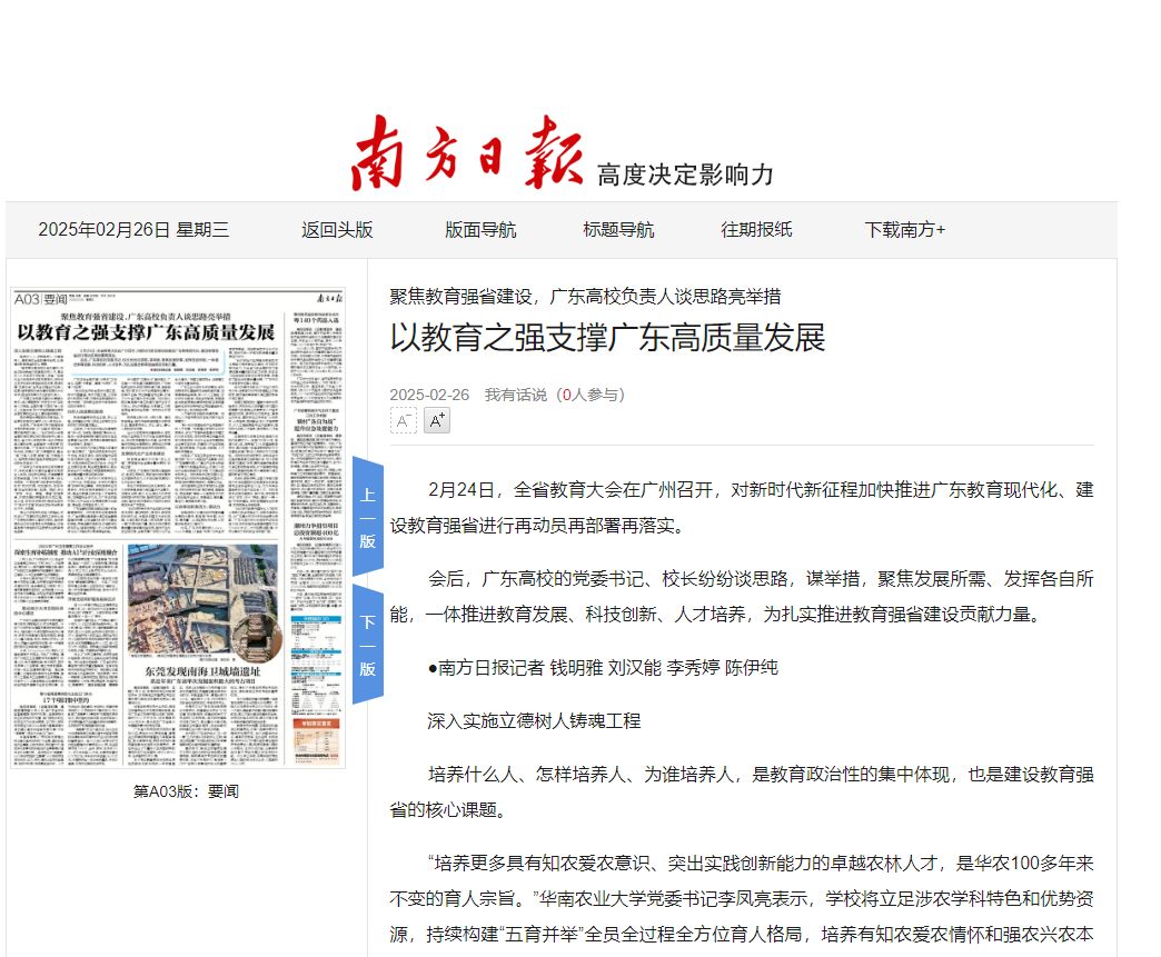 会后,广东高校的党委书记、校长纷纷谈思路,谋举措,聚焦发展所需、发挥各自所能,一体推进教育发展、科技创新、人才培养,为扎实推进教育强省建设贡献力量。