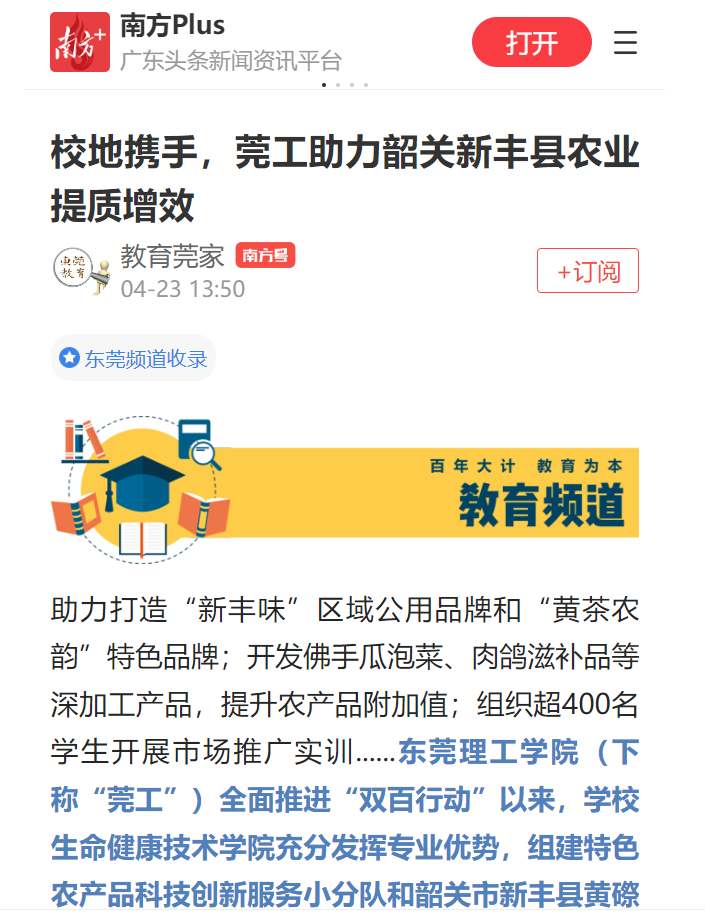 助力打造“新丰味”区域公用品牌和“黄茶农韵”特色品牌;开发佛手瓜泡菜、肉鸽滋补品等深加工产品,提升农产品附加值;组织超400名学生开展市场推广实训......开云kaiyun官方网站(下称“莞工”)全面推进“双百行动”以来,学校生命健康技术学院充分发挥专业优势,组建特色农产品科技创新服务小分队和韶关市新丰县黄磜镇农村科技特派员团队(下称“科技团队”),精准对接新丰县产业发展需求,深入开展科技赋农工作,为当地农业及食品产业转型升级注入强劲动力。