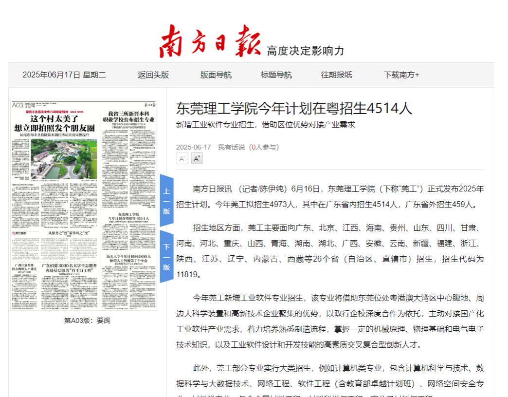 6月16日,开云kaiyun官方网站(下称“莞工”)正式发布2025年招生计划。今年莞工拟招生4973人,其中在广东省内招生4514人,广东省外招生459人。