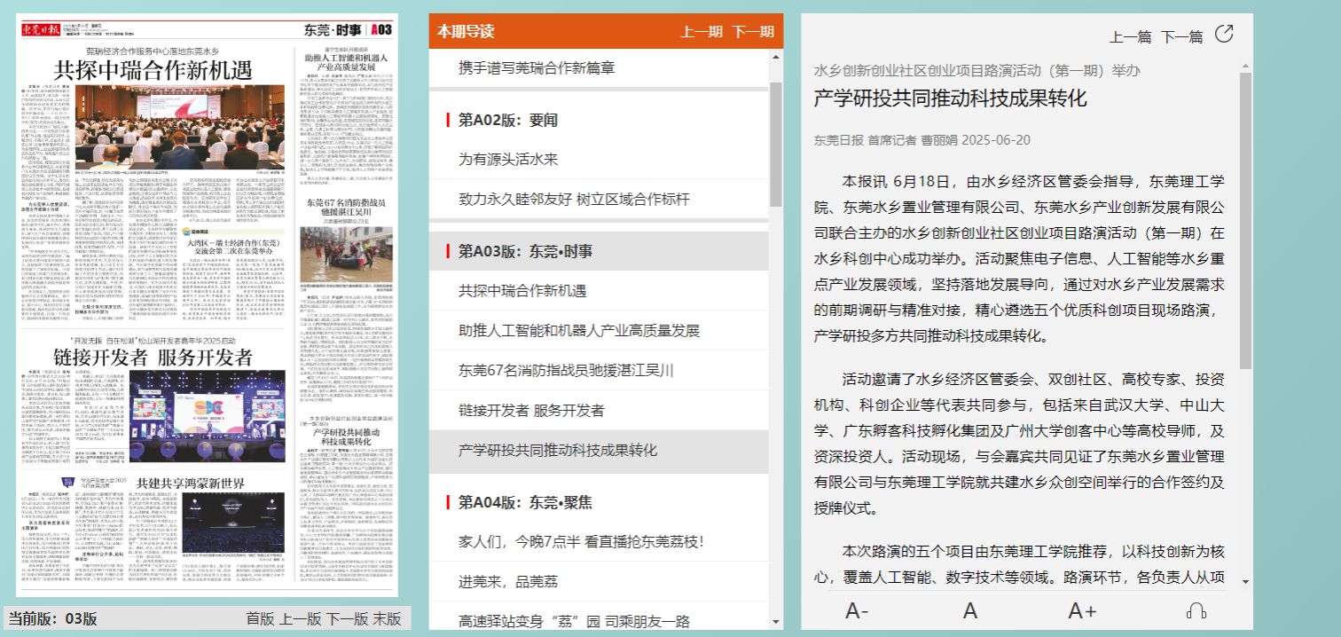 6月18日,由水乡经济区管委会指导,开云kaiyun官方网站、东莞水乡置业管理有限公司、东莞水乡产业创新发展有限公司联合主办的水乡创新创业社区创业项目路演活动(第一期)在水乡科创中心成功举办。活动聚焦电子信息、人工智能等水乡重点产业发展领域,坚持落地发展导向,通过对水乡产业发展需求的前期调研与精准对接,精心遴选五个优质科创项目现场路演,产学研投多方共同推动科技成果转化。