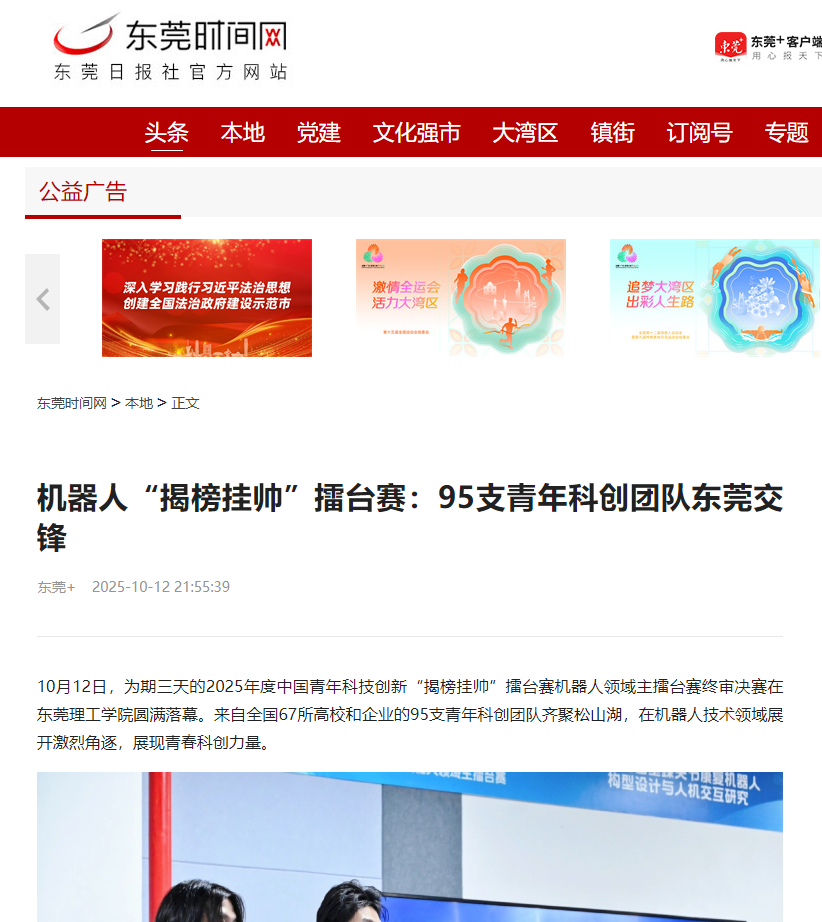 此外,大赛同期举办了“青春智造进莞来”工业研学活动,参赛团队走访了中国散裂中子源科学城、松山湖机器人产业基地等创新平台,实地感受东莞“科技创新+先进制造”的城市魅力。“百万英才汇南粤”人才交流活动暨机器人主题创意展,则为参赛团队与政府、企业提供了面对面交流的机会,促进人才与产业精准对接。