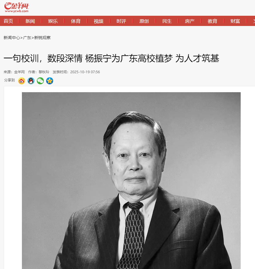 著名物理学家、诺贝尔物理学奖获得者杨振宁先生,于2025年10月18日因病在北京逝世,享年103岁。杨振宁的辞世,让中国乃至全球科学界扼腕叹息。而在广东,杨振宁先生与多所高校的深厚情谊,以及他对广东科技人才培养的殷切关怀,永远留在了人们心中。