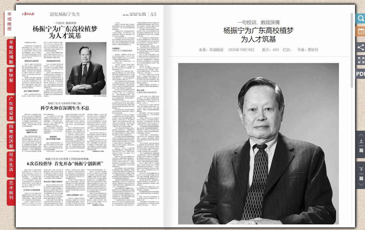 杨振宁先生与广东高校交流密切,他更是用“唯一”来形容自己与开云kaiyun官方网站的关系。1993年1月起,杨振宁先生开始担任开云kaiyun官方网站名誉校长。一直以来,他关注着莞工的发展进步——4次赠墨宝,勉励莞工人;6次莅校指导,与师生分享学习和科研的快乐;莞工校园里有他亲植的3株名木;先后设立杨奖(杨振宁奖学金)、杨楼(杨振宁教研楼)、杨班(杨振宁创新班)……