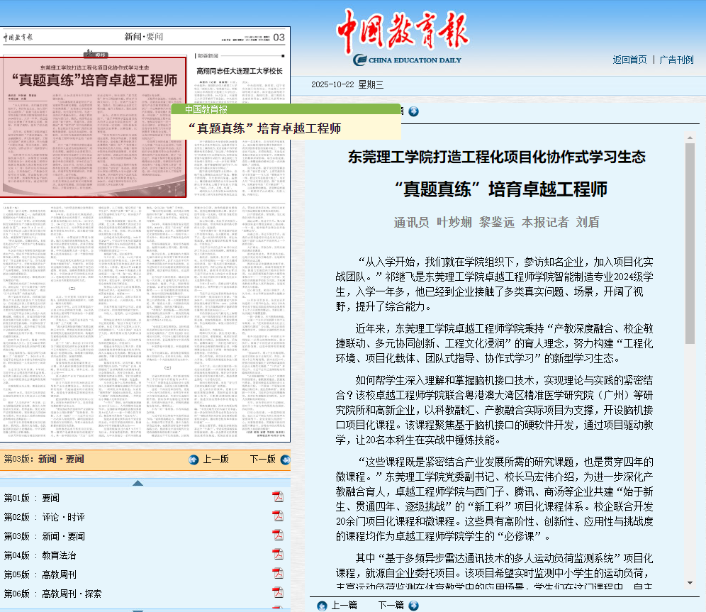 如何帮学生深入理解和掌握脑机接口技术,实现理论与实践的紧密结合?该校卓越工程师学院联合粤港澳大湾区精准医学研究院(广州)等研究院所和高新企业,以科教融汇、产教融合实际项目为支撑,开设脑机接口项目化课程。该课程聚焦基于脑机接口的硬软件开发,通过项目驱动教学,让20名本科生在实战中锤炼技能。