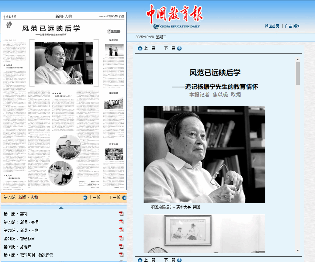 “杨先生特别关心我国的人才培养与教育质量,他的观点启发了国内多所高校进行人才培养模式改革。”陈佳洱表示。
