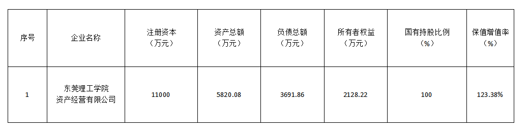 校办企业资产、负债及国有资产增值保值等信息公开一览表