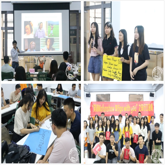 活动伊始,满志北老师结合自身经历及社会阅历对英语学习前景和方向进行介绍,强调学生学好英语的重要性。随后,他通过一组有趣的人物图片,鼓励和引导学生用英文描述内容,逐渐深入讲授不同场合的穿衣艺术以及透过穿衣风格去分析人物的性格特点等方面对本期主题“CLOTHES MAKE THE MAN(人靠衣装马靠鞍)”进行深刻的阐述。在老师的带动下,现场气氛活跃,学生积极参与问答互动、成立小组进行讨论。最后,各小组分别上台用英语进行小组风采展示、表达自己对主题的见解,评委们则对各小组的表现进行点评并提出建议,鼓励和支持学生继续保持学习英语的热情和练习口语的毅力。