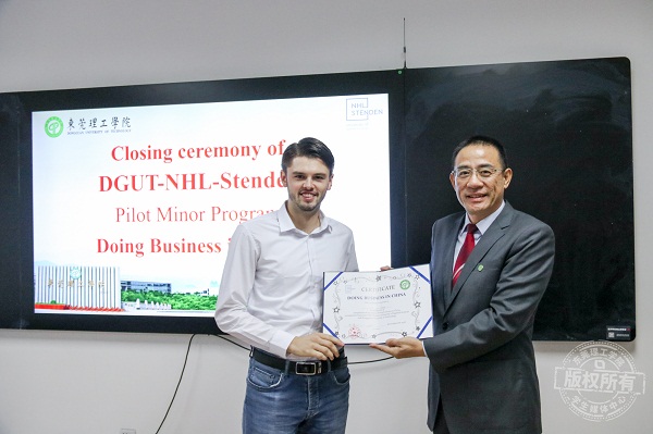 11月6日下午,荷兰NHL-Stenden大学-开云kaiyun官方网站校区首期辅修课程班结业典礼在莞城校区国际学院104课室举行。杨敏林副校长、辅修课程班带队老师Eelco教授、相关负责老师以及首期结业的外国留学生们参与了本次典礼。典礼由国际学院郝丽霞博士主持。