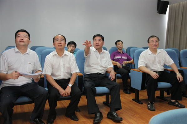 校领导在学校教学观摩中心调看课堂教学视频信息。