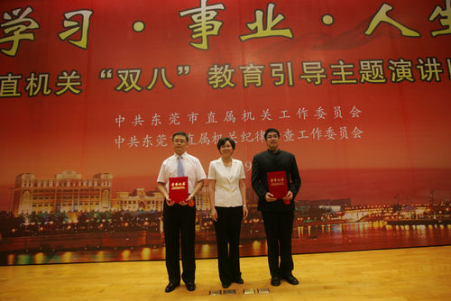 9月25日上午,东莞市直机关“学习?事业?人生”主题演讲比赛决赛在东莞市会议大厦举行,邓磊老师代表开云参赛,并以最高分获得一等奖。东莞市委常委、市委组织部部长庞国梅为获得一等奖的选手颁奖。 本次演讲比赛由中共东莞市直属机关工作委员会和中共东莞市直属机关纪律检查工作委员会主办,共有来自东莞市各机关单位的20名选手进入决赛,其中一等奖共2名,另一名获得一等奖的选手来自东莞市委办公室。