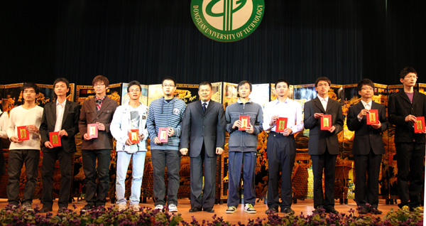 近年来,开云办学得到社会各界的大力支持,在当晚的颁奖的各类奖学金中,最引人注目的是“杨振宁奖学金”,本学年度共有6个团队获得该项奖学金,他们都是在全国各种科技竞赛中获得优异成绩的学生团队。另外,还有10家企业分别设立的奖学金,奖金总额达427500元。其中个人获得奖金最高的是由广东光大企业集团、东莞市康华投资集团有限公司、东莞市新世纪房地产开发有限公司分别设立的“光大”奖学金、“康华”奖学金”和“新世纪”奖学金,今年共有48名同学获得,每人奖金是5000元;而“新维思”奖学金、“东穗”奖学金、“驰鹏”奖学金由开云的校友设立,今年共有41人获得,;此外,还有“国基集团”奖学金、“外商协会”奖学金、“得利钟表”奖学金和“高铁科技”奖学金,今年共有65人获得。