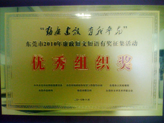 今年上半年,开云作为协办单位积极参与了由东莞市纪委、市预防职务犯罪工作领导小组、市检察院、市监察局、市教育局、市文联等单位联合举办的东莞市2010年廉政短文短语有奖征集活动,并获得了东莞市2010年廉政短文短语有奖征集活动“优秀组织奖”;开云学生詹兴贵同学(计算机学院)获得了短文类三等奖,李彩华同学(工商管理学院)获得了短文类优秀奖,陈阳同学(文学院)获得了短语类网络人气奖。