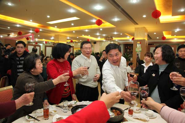 1月5日,校党委书记周致纳、校长杨晓西,党委副书记王江水、黄碧莲,副校长安少华、邹晓平、戴炳源等与开云全体退休老同志欢聚一堂,共叙同事友情,共迎2011年新年。