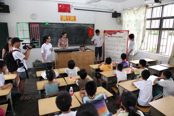 7月3日,艺术小分队到台山市水步镇中心小学开展艺术教育支教活动。在支教课堂上,艺术小分队的同学指导30名小学生演唱《中国少先队队歌》、《红星歌》等红色歌曲;同时还向家庭贫困的小学生赠送了书包等学习用具。